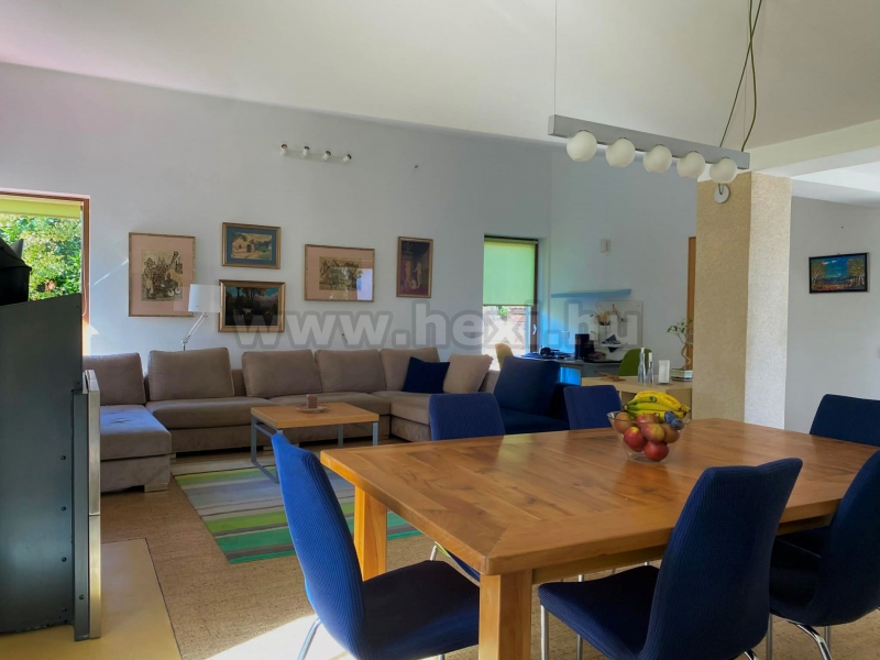 | EGYSZINTES MODERN HÁZ NAGY CSALÁDNAK ♥ CSAK A HEXITŐL Piliscsaba egyik legkedveltebb részén nappali + hat szobás ház teraszokkal, gondozott kerttel eladó. Ybl-díjas tervező tervei alapján 2014-ben épült, háromrétegű fa ablakokkal, 16 cm homlokzati hőszigeteléssel. Hőszivattyú fűti nulla költséggel a 10+4 kW-os napelemrendszernek köszönhetően. Kandalló is rendelkezésre áll a fatüzelés szerelmeseinek. A tágas közösségi terek mellett 6 külön hálószoba, két fürdő és egy vendég mosdó biztosítja a család minden tagjának kényelmét. Az átrium jellegű belső kert egyedi hangulatot teremt. Szépen parkosított ertjében gyümölcsfák és magaságyások termelik a vitamint. A ház egyik oldalán van egy önálló helyrajzi számú kislakás külön bejárattal. Csendes környék, kitűnő infrastruktúra, karnyújtásnyira iskola, óvoda, vasútállomás, erdő. HEXI INGATLAN - OTTHON A PILISBEN 2010. ÓTA A PILISI INGATLANOK iRODÁJA |